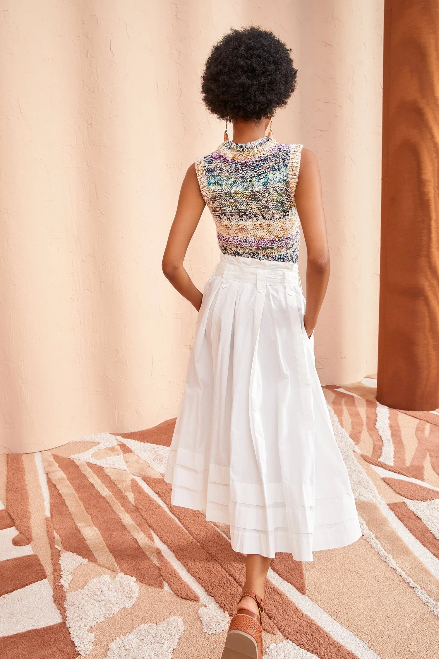 The Dylan Skirt is an Ulla Johnson exclusive, and has been crafted from our signature water washed cotton poplin in a crisp white hue. This essential midi skirt is defined by its adjustable paperbag waistline, rows of tiny trapunto topstitching, and a removable belt.
