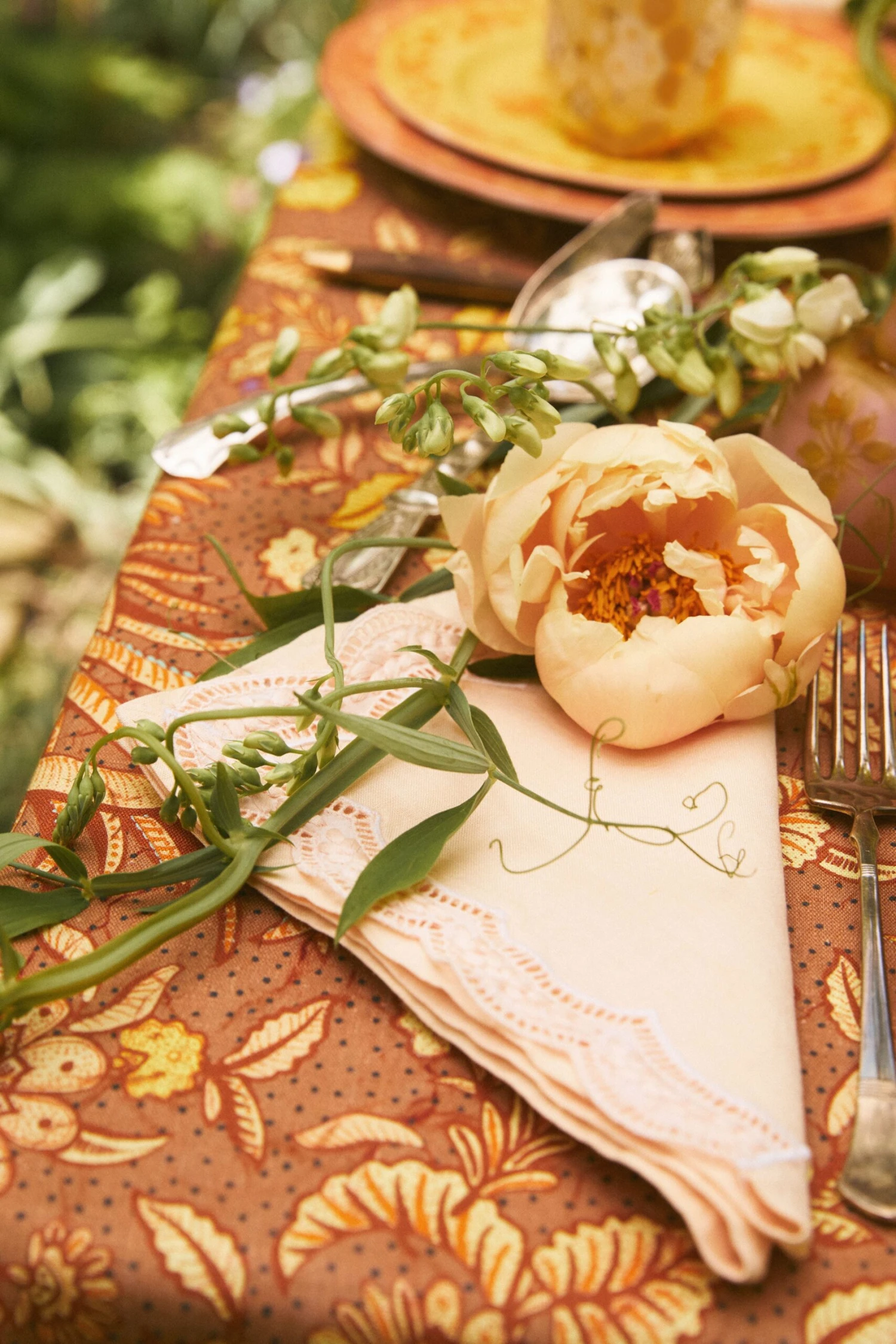 Inspired by the joyful spirit of summer, the Ulla Johnson x Cabana capsule sets the stage for unforgettable alfresco dining experiences. This linen napkin is crafted in Tuscany, hand-dyed in a warm, blush color and embellished with a scalloped embroidered floral border. This capsule marks Ulla’s first foray into home with a tabletop collection of elegant linens, porcelain dinnerware, Murano glassware and home pieces, all of which beautifully reflect the merging of our two worlds. This napkin is sold as a single, shown here styled two ways.