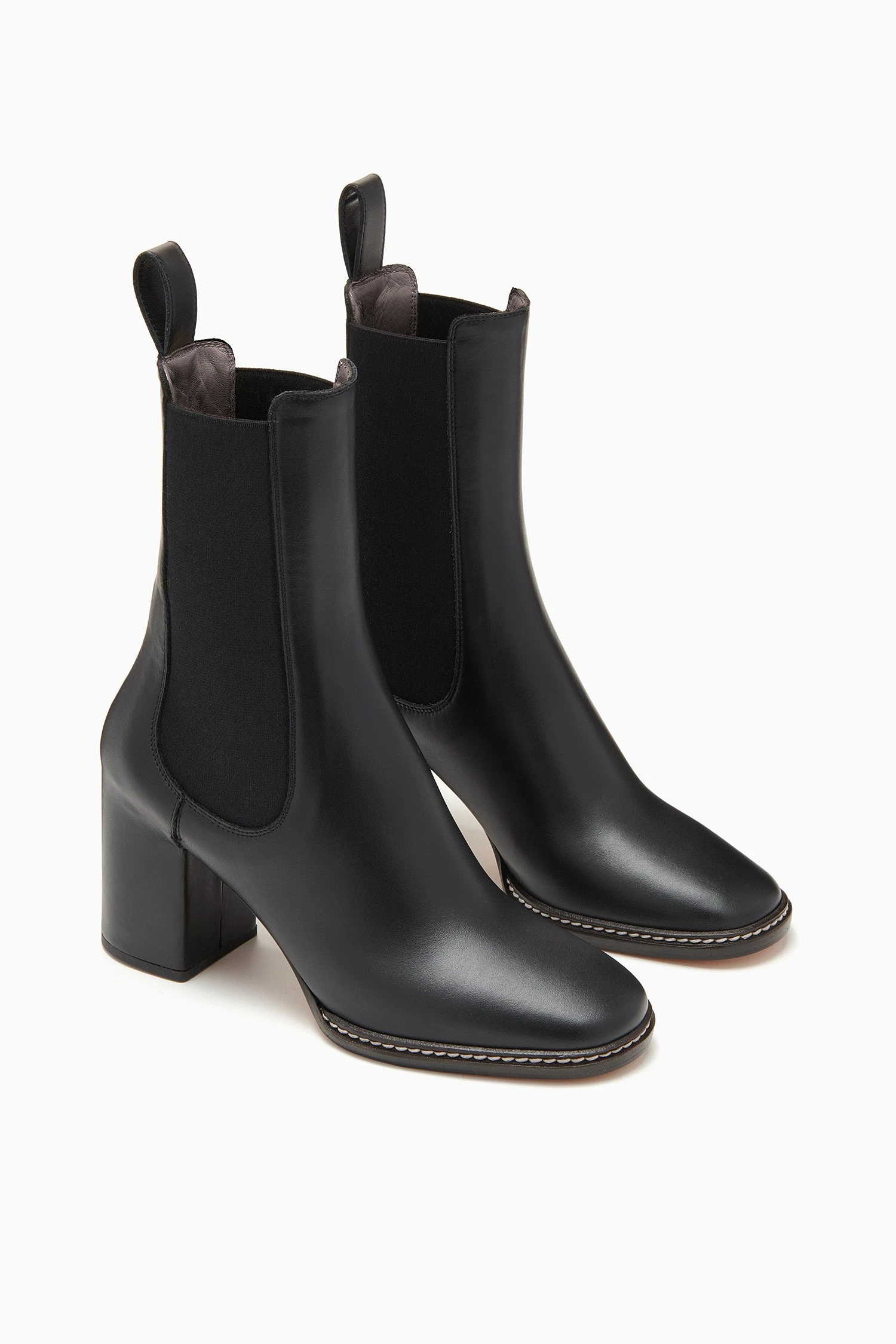 The Taryn Chelsea Boot is beautifully crafted from supple calfskin leather and has a covered 70mm heel. These classic black boots have pull tabs for effortless wear and are finished with elasticated side panels.